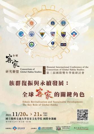 國立陽明交通大學與全球客家研究聯盟於2025年11月20日至11月21日於客家文化學院舉辦「2025第三屆全球客家研究聯盟國際雙年學術研討會」。(一)會議主題:族群復振與永續發展:全球客家的關鍵角色。(二)日期:2025年11月20日、11月21日(星期四、星期五)。(三)時間:9:00~18:00 ...更多